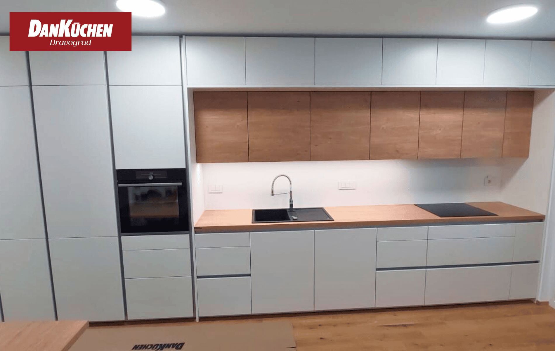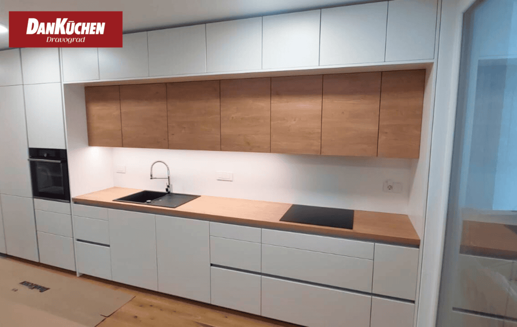 Model Silbermond, bele supermat lakirane fronte in leseni dekor ulme.