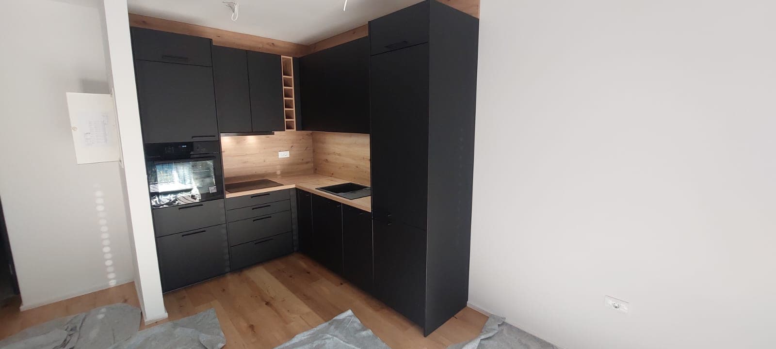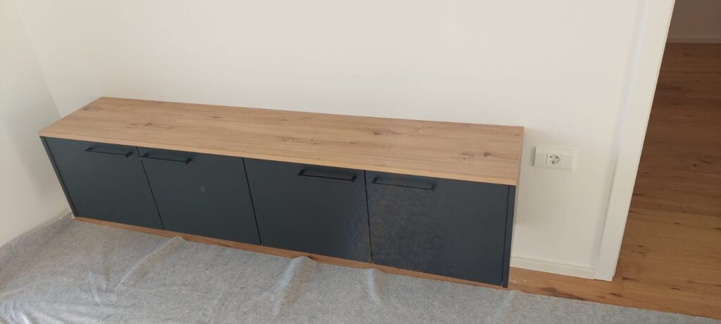 Zmontriali smo še eno Silbermond kuhinjo. Stranka je izbrala odtenek antracit supermat lak, za prijeten kontrast med sodobnim in naravnim pa delovno ploščo in stensko oblogo iz grčastega hrasta.Kuhinjo smo dopolnili še z dnevnim regalom.