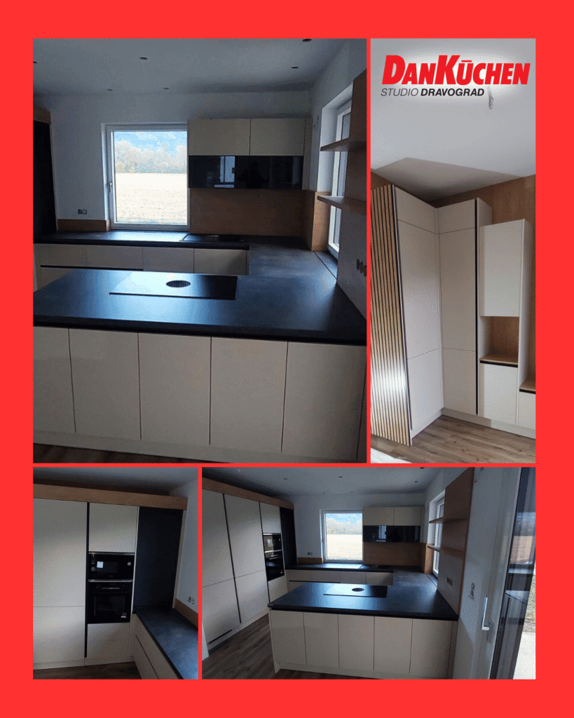 V Avstriji smo zmontirali kuhinjo, shrambo in predsobo, ki se popolno zlijejo v eleganten, a topel dom. Stranka je izbrala model Silbermond z Jasmin superlak mat ličnicami, ki prostoru dodajo svetlobo.