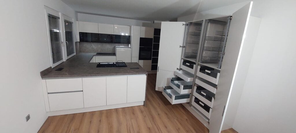 S premišljeno zasnovanimi omarami za shrambo kuhinja ponuja več prostora, reda in udobja.