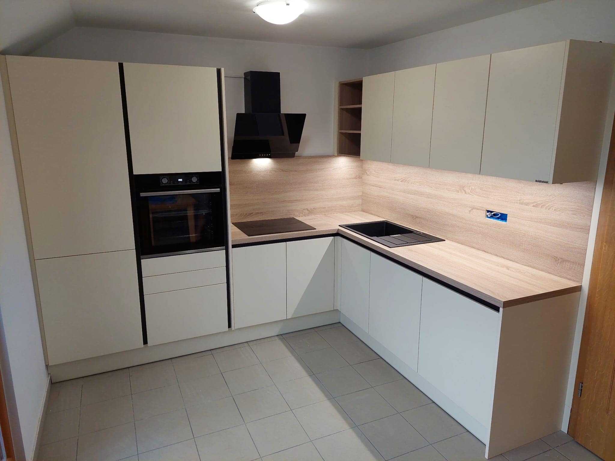 Montirali smo naš najbolj prodajan model Silbermond – tokrat v čudoviti kombinaciji front v odtenku Magnolie in dekorjem lesa svetlega hrasta.